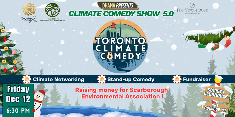 Toronto Climate Comedy's Holiday Edition is here! Our first 4 events were sold-out :) Come join us as every laugh helps save our planet.